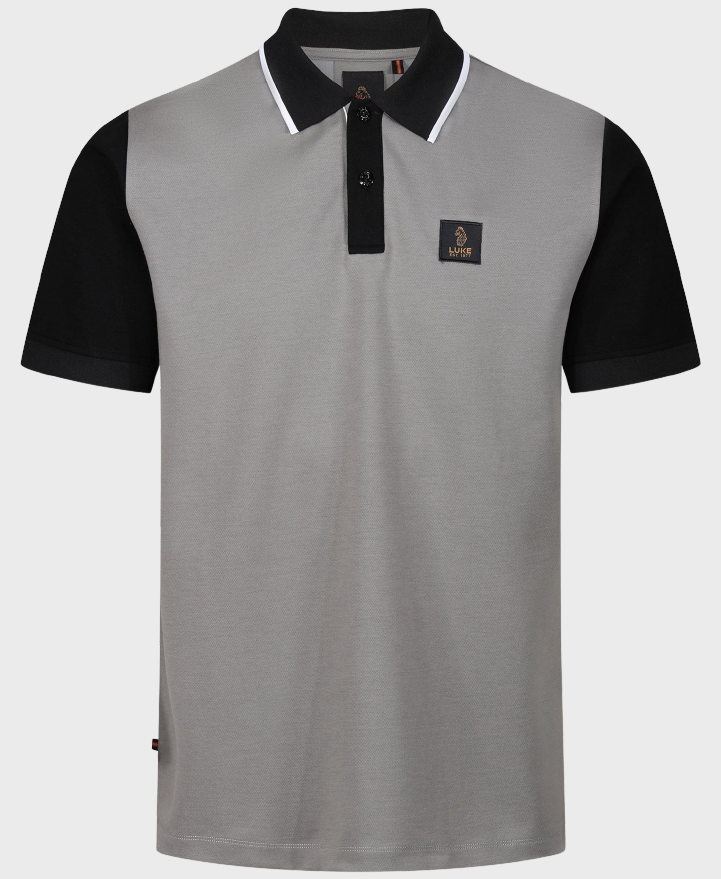 Add a stylish and comfortable touch to your wardrobe with this colour block polo from LUKE. Made from premium stretch cotton pique, it features contrast panelling and military buttons. The subtle check print on the placket adds a unique touch, while the iconic LUKE badge and tri-colour trim tape showcase brand expertise.